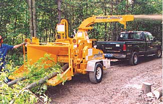 Model No.: 1590 Diameter capacity: 17” Engine: 240 hp Height, length, width: 8’ 6”x 7’ 1” x 14’ 9” Weight: 6,900 lbs. (depending on options) Chipper blades/knives: Four reversible, double-edged knives (May be sharpened as necessary with Bandit Knife Saver tool) Warranty: 1-yr. Special Features: 360????? Swivel discharge; Auto Feed Plus??????oe; Powerful two-wheel feed system; High energy / low fuel consumption chipping drum Cost: Range: $32,000.00 – $39,000.00 depending on options