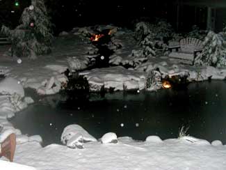 Ponds in arctic-weather parts of the country can stay liquid with the addition of a heating element. According to one Ontario, Canada-based contractor, creeks and waterfalls moving more than 2,000 gph can run throughout the winter without heaters.