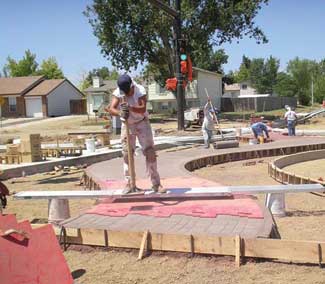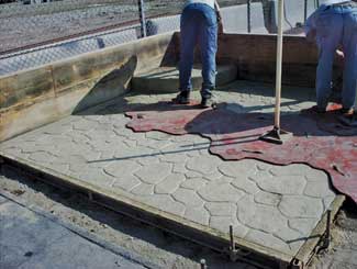 While on the subject of timing, two handy methods exist to know when concrete is ready for stamping. If you stick your finger in the concrete and it will only go in up to the first knuckle, it?EUR??,,????'???s time to work. Also, if a rock is tossed onto stamp-ready concrete, it should leave a divot and bounce, rather than sink. It?EUR??,,????'???s worth noting that these jobs are commonly offered at reduced prices as a result of the easier and faster nature of the work. A popular texture at this point is both heavy and light slate.