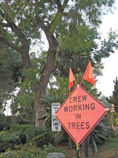Wind gusts exceeding 50 mph played havoc with trees across Southern California in October. The windstorm also blew up more than a dozen fires that devastated the region????and its trees. Arborists and landscapers scrambled for weeks to keep up with calls; here landscaper and arborist Dana Hasson (upper, rear) starts removing limbs in a process that will lead to the removal of the damaged Aleppo pine behind the California pepper tree up front. Experience is an invaluable key to tree-trimming, the Chino, Calif. resident explained. ???Each tree has its own process,???? he said.