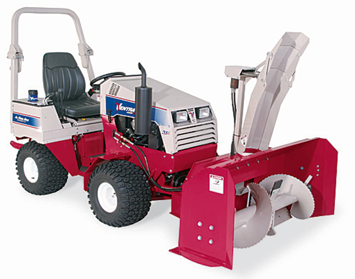 Venture Products, Inc. Model No.: Ventrac Snow Blower KX522 Cutting Width: 26'' high and 52'' wide opening, distance up to 40'' Fan Diameter: 5'' x 20'' inch blower Weight: 475 lbs. Horsepower: 26.5 to 31 HP with a turbo diesel Special Features: 2-Stage System; double spiral saw-tooth auger; double hinge directional chute with optional electric remote control; standard hydraulic controlled; 220 degree rotation discharge chute. Warranty: 2 years Cost: $3,990