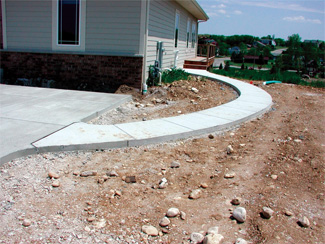 “Curves are another area where the forms are nice,” Ladewig asserts. “It’s a pain to keep Masonite in stock all the time, and we need to use more pins or backfill to kept it rigid. Now for a round patio we just put a bunch of the forms together and bend them to shape; then we go through with stakes here and there, adjust them a bit, and we’re ready to pour.”