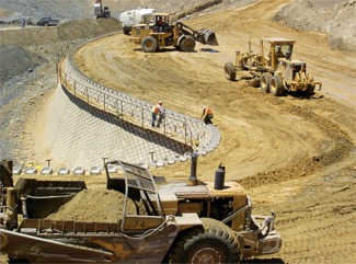 The cost savings of integrating wall construction with the grading operation will result in significant cost savings over alternative methods, but the placement of the geosynthetic reinforcement and wall facing must be integrated with the placement and compaction of the fill. If this can be facilitated, the cost and time of double dirt handling is avoided.