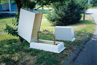 Fiberglass enclosures: The fiberglass enclosure is a very versatile product. It offers a higher level of freeze protection than all of the above mentioned products. This type of installation is conducive to adding a heat source that gives the enclosure the ability to offer freeze protection in the most demanding climates. The fiberglass enclosure gives an implied ability to provide vandal protection and depending on the manufacturer, the cost can range from expensive to down right cheap.