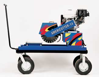 Model No.: Americutter 14-9 Brick Saw Engine and horsepower: 9 HP Honda Blade Capacity: 14 inches Depth of Cut: 5.5 inches Length of Cut: 18 inches Weight: 210 pounds Features: The most powerful and durable brick and masonry saw in the industry. Direct drive design results in more usable horsepower to the cutting blade. Entire chassis is heavy-gauge full-welded steel that is rental-tough.. Warranty: 1 year Cost: $2,050