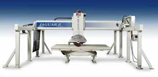 Model No.: Jaguar II Diamond Gantry Bridge Saw Engine and horsepower: 25 or 30 Horsepower Baldor motor Blade Capacity: 36 inches Depth of Cut: 13 inches Length of Cut: 146-inch cross-head travel distance Weight: 6,000 lbs. Features: Programmable for automatic operation, optional straight-line profiling package, remote dial-up serviceability, amp following, laser light and 0 to 90-degree arbor miter with manual gearbox positioning. Warranty: 1 year Cost: Contact for pricing