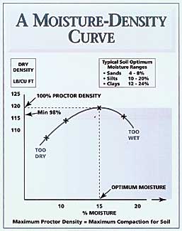 Moisture is very important to achieve proper compaction of base material. Water works as a lubricant to move the base particles together. Pick up a hand full of the base material on the job site and squeeze it together. If it falls apart when you open your hand, it is too dry. If it stays clumped together, there is enough moisture. If water runs out, there is too much water.