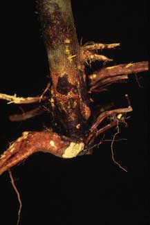 Phytophthora, commonly referred to as root rot or collar rot, is a genus of oomycetes which are organisms similar to fungi. There are 59 species of phytophthora and each of them cause disease in plants. Common hosts include, but are not limited to, dogwood, maple, hemlock, fir, cedar, and white pine. One particular species, Phytophthora ramorum, is the pathogen causing the disease ?EUR??,,????'??sudden oak death?EUR??,,????'?? in California?EUR??,,????'???s native oaks. Many other nursery and landscape plants, like rhododendron, carry the disease. Though the Phytophthora ramorum does not kill some of the plants which carry the disease, it is usually fatal in susceptible oaks like tanoak. The disease has not spread beyond California and Oregon.
