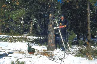 ?EUR??,,????'?????<??????????????(R)?EUR??,,????'?EUR??,,?EUR Do cut large branches in three parts. First, cut off about one-third of the branch to reduce the weight. Holding up a heavy branch while you prune it off the trunk will break your back and your saw, and tear the trunk?EUR??,,????'?????<???EUR?s bark. Next, undercut the remaining stub so the trunk bark won?EUR??,,????'?????<???EUR?t rip when the stub falls free. Last, make the final cut from the top, beside (but not cutting into) the branch collar.