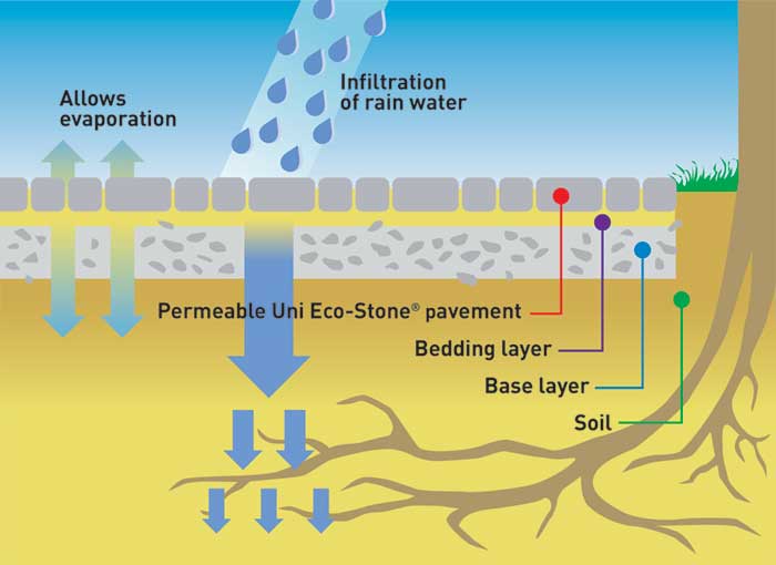 Over the last several decades, many factors have led to the creation of groups like USGBC. Increases in population and expensive real estate have created intensively developed urban areas. These areas have not only taxed our infrastructure, but have also negatively affected our environment. We have come to the realization that sustainable development needs to be taken more seriously. Companies that manufacture concrete products have already taken note because their products are a large contributor to the ?EUR??,,????'??concrete jungle.?EUR??,,????'?? In Europe, problems with a declining water table, heat islands in their major urban areas, and pollution in water coming off impervious paved areas, forced their hand to search for a solution. Concrete paver manufacturers saw the writing on the wall in Europe years before it became an issue in North America. These companies took the lead and introduced several permeable paver options to the design and civil engineering community.