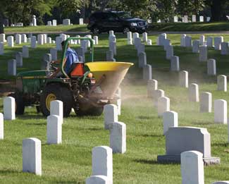 The volunteer efforts at the cemeteries are scheduled around PLANET?EUR??,,????'???s annual Legislative Day on the Hill. More than 300 landscape, lawn care, and tree care specialists from across the nation brought their crews to Arlington National and Historic Congressional cemeteries and spent the day mulching, cabling trees with lightening protection, pruning, liming, planting, and aerating, as well as installing the irrigation system at Arlington National Cemetery.