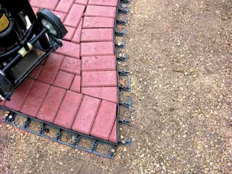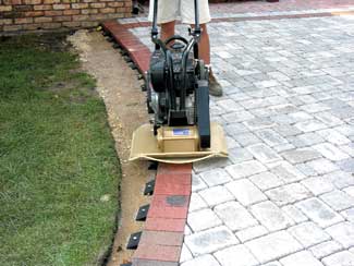 As important as base preparation is, the paver edging is what actually holds the entire pavement together. These two work hand in hand to create a true flexible pavement system. Besides being aesthetically pleasing, interlocking pavers enable weight to be distributed evenly throughout the surface. This end result is created by the surface tension the compacted, restrained pavers provide. This is why edging is so critical in any application. The only way to obtain optimal surface tension, so the pavers can work as one system, is to compact the surface with a 3,000 to 5,000 pound force compactor. If your edging shifts during this process, perimeter interlock will never take place.