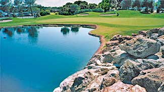 A recent installation at a community golf course involving the use of Firestone PondGard EPDM Geomembrane included several water features and began with the excavation process. Following the dig, the water feature sites were graded and compacted in preparation for the installation. Based on measurements of the excavated areas, the geomembranes were pre-cut off site; transported to the site; and then unrolled, positioned and smoothed into place by the crew. For larger water hazards, seam tape was used to join the panels, forming high-quality field seams that grow stronger with time. They also provide excellent seam strength and are easy to install accurately for dependable, long-term performance.