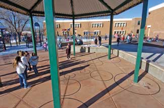 Like most public school districts, DPS has limited resources and personnel to maintain their 73 elementary schools. It can?EUR??,,????'???t do it all and the special features of the Learning Landscape projects pose the potential for increased maintenance needs. DPS maintains the basic outlines of the court games, for instance, but asks the schools to maintain the colorful playpad striping. The schools commit during the design phase to the color and receive the striping templates once construction is complete. Community groups help during spring and fall clean-ups and specialty gardens are often maintained by local gardening groups, such as the Denver Urban Gardens program. To keep maintenance costs down, Design Concepts has researched and specified synthetic turf for play surfacing to replace the engineered wood fiber the district typically used, which required regular raking and replenishing.