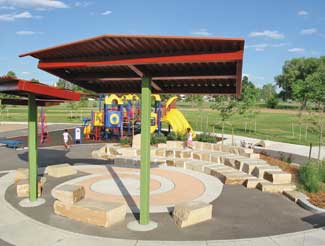 While the DPS playground design focuses on outdoor play and outdoor learning for the kids, they also welcome public use of the school sites during nonschool hours. Cultivated and habitat gardens, art projects, amphitheaters, performances stages, math and science walks, poetry in the landscape and geography features are among the attractions.