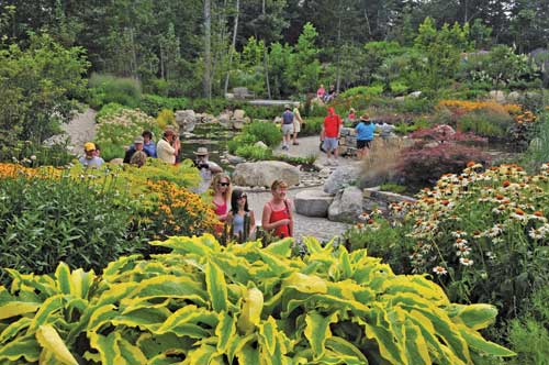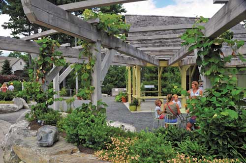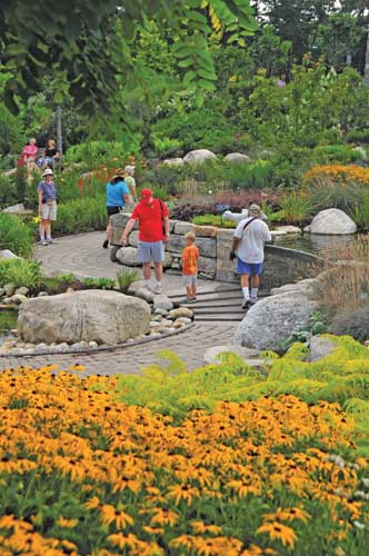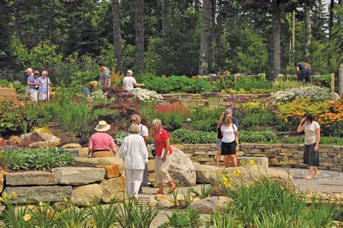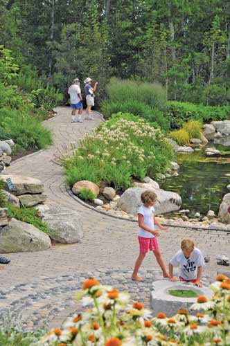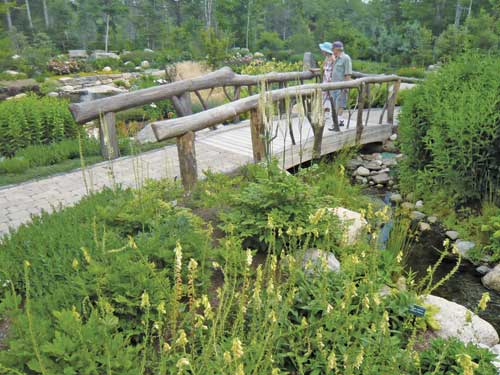To exit the sensory garden, we cross a bridge with sides made of tree trunks and large, interwoven branches stripped of their bark. It leads to a dozen other ornamental gardens and paths along nearly a mile of waterfront and through forests filled with majestic ledge, wildflowers, and ferns. As we continue to explore the Gardens, we realize that our visit to the sensory garden made us more aware and increased our enjoyment, even as it heightened our senses.