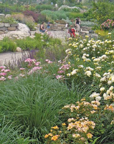 By the clever use of terrain and a meandering path system, this one-acre garden has 600 feet of primary path and another 400 feet of secondary path, which provides a rich variety of sequential views, vantage points, and nooks. Even with high visitation, there are many opportunities for intimate experience.
