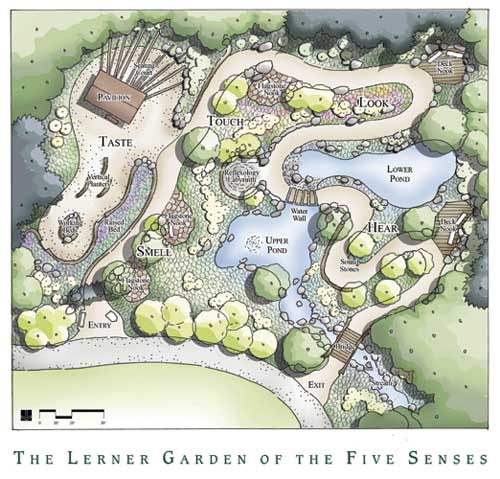 The Sensory Garden What?EUR??,,????'?????<???EUR?s the Lerner Garden of the Five Senses all about? As visitors enter each successive area of this highly interactive sensory garden, they find features devoted to each sense in turn. The areas blend into one another, as sensory experiences tend to do in life.