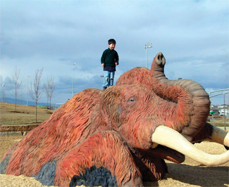 To evoke local natural history, we designed, as a focus for the park, an “adventure” playground with a life-size wooly mammoth structure that kids could climb on.