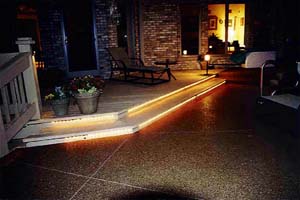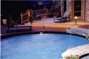 Some examples of Feller lighting installations will serve to illustrate both the many options available, and the planning required to create the most effective lighting system. One large installation, located in Bartlett, Ill., involves a home that is part of a development centered around a pond. The sumptuous mansion-sized house boasts both an upper patio and a lower deck, a swimming pool, and numerous plantings.