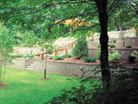 As segmental retaining walls (SRWs) become increasingly popular components in a landscape architect?EUR??,,????'???s ?EUR??,,????'??toolbox?EUR??,,????'??, demand for product innovation is heightening similarily. Clearly, modular concrete retaining wall systems have proven to be a more cost-effective and longer-lasting alternative to their most commonly used counterparts - cast-in-place concrete and pressure-treated timber walls - but the drive towards further advancement hasn?EUR??,,????'???t slowed down. Landscape architects and clients alike want products that are both functionally and aesthetically elegant. Retaining walls are expected to be ?EUR??,,????'??jacks of all trades?EUR??,,????'?? that blend in with their native environment. Simply put, SRWs should get the job done, and look good doing it. A tall order perhaps, but manufacturers are eager to step up to the plate to make their products even more capable of multi-tasking. One way to do so is with lighting. As any good designer knows, lighting is a crucial means of making a space usable and beautiful. Effective lighting can be employed to draw attention to eye-catching landscape features as well as to illuminate obstructions that are potentially hazardous. A relative newcomer to the lighting scene is the category of retaining wall lights. A variety of options exist, but all aim to enhance the appearance of the walls in which they reside, while increasing the level of safety for pedestrians. One popular choice for retaining wall lighting is the method of attaching a fixture to an existing block. A possible variant of this technique involves insetting the fixture so that it is flush with the face of the wall. The installer must first measure and drill out the hole to the proper width/diameter and depth, then secure the fixture to its power source (with the wiring presumably leading through the rear of the block). This process requires exact cutting and placement, making it less suitable for do-it-yourself landscapers. A less complicated manner of attaching a lamp to an existing retaining wall block is to simply fasten it to the face. Some drilling and cutting will be required, but since the attachment is not expected to be flush with the face of the wall, precision is not as vital an issue. These lights are often partially covered with a protruding shade that aims the light in a chosen direction. Please refer to the accompanying photos of the circular driveway for a depiction of how this effect can work beautifully. These photos are from a residential project that was completed in 1999 in Vancouver, British Columbia. Some retaining wall manufacturers have opted to create lights that can be built into the wall in the same way as the rest of the structural units. Risi Stone Systems produces RisiLights??????oe - self-contained, fiberglass and acrylic units that have been textured and color-matched to resemble their adjacent Pisa2??????oe or PisaStone??????oe blocks when installed. With the lights switched off during daytime hours, it is difficult to tell the difference between the lighting units and the concrete wall blocks. This seamless color and texture matching affords the walls the capability to truly blend in unobtrusively with their surroundings. RisiLights??????oe are shipped complete with instructions and wiring; the only additional items needed are the light bulb and the appropriate underground electrical cable. For an illustration of how these lights look in both day- and night-time conditions, refer to the accompanying photos of the terraced landscape. No matter which sort of retaining wall light you choose, planning must be done from the initial stages of design to ensure proper placement. Utilities must be located, underground cables positioned, and situation of lit areas - walkways, stairwells, and passages - determined. Any number of variables may need to be addressed during the design phase of a project. For example, if the design calls for stair treads to be illuminated via fixtures on the risers, high-strength lights that can withstand foot-traffic surcharges must be specified. With careful planning, retaining wall lighting can be an effective way to create a safe environment and accent your landscape design.