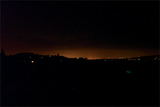 Light Pollution: the night sky glow caused by the scattering of artificial light in the atmosphere.
