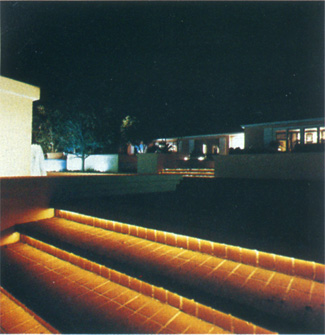 John Lomeli, John Lomeli Lighting Consultant, sees the same thing. “Everyone knows what they want,” says Lomeli, “at least they can describe it verbally. We are called upon to act as an interpretive liason and put all the factors together to create the solution.” This is where a consultant becomes a necessity for a proper lighting plan. Far be it for every landscape architect to know all there is about proper lighting, the right equipment, the right codes, and the use of the various sources of light ( mercury vapor ( MV ), incandescent, metal halide ( MH ), fiber optics, high intensity discharge ( HID ), high pressure sodium ( HPS ), low voltage, etc.)