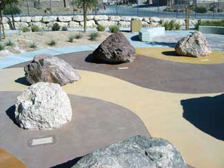 Adjacent to the north of the lecture area is the “Turtle Shell Maze.” A network of walkways were oriented between mounded landscape areas to give the user a sense of enclosure, while maintaining a visual connection to the rest of the park. Located in the center of the maze is a large climbing rock.