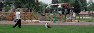 The design team addressed these concerns during the public collaborative-design process; the final plan sited the dog park in the southeast part of the site, away from homes and screened from the central shelter and the neighbors by tall grasses. Ponds on the southeast and east sides store reclaimed domestic water from the city?EUR??,,????'?????<????????????EUR??,,??s wastewater treatment plant for use in irrigating the park (dogs can frolic in one of the ponds). On the north side, berms help to screen the park for neighbors.