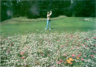 Because wildflowers are excellent choices for low-maintenance areas, they are popular with many golf course superintendents. Maintenance costs can be reduced by as much as 30%, as compared to turf. Popular areas for wildflowers are in the roughs, in doglegs on fairways, and close to tees. Rather than mixtures, some superintendents like to plant single species to provide bright splashes of color that can be seen from a distance. Annual wildflowers are especially popular for this purpose because they are showy, grow quickly, and tend to bloom all summer.