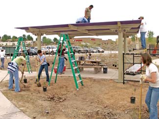 In case any school remodeling or new construction is planned, shade provision should be strongly considered in the architectural design. If thought out ahead of time, there may be very cost-effective opportunities for providing areas of high quality shade by incorporating structural elements such as covered porches, broad eaves, or breezeways.