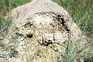 After mating, the new queen excavates a brood cell underground. Within 30 days, large workers emerge daily and within six months several thousand workers can occupy a colony or mound. The mound is a cone-shaped dome of excavated soil that has a hard, rain-resistant crust. The mound averages 0.40 m in diameter and 0.25 m in height. In heavier soils, the mound can be bigger.
