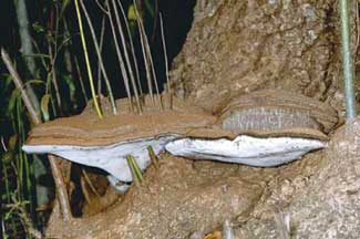 Wood decay is usually a disease of old, large trees. It is very difficult to manage, but a number of factors can reduce the risk of serious damage. First, trees should receive proper cultural care to keep plants vigorous. Minimize wood decay by protecting plants from injuries. Properly prune young trees to promote good structure and avoid the need to remove large limbs from older trees, which creates large wounds. Cut out dead or diseased limbs. Make pruning cuts properly: prune just outside the branch bark ridge, leaving a collar of cambial tissue around cuts on the trunk to facilitate wound closure, but avoid leaving stubs. Make cuts so that rainwater will drain.
