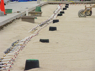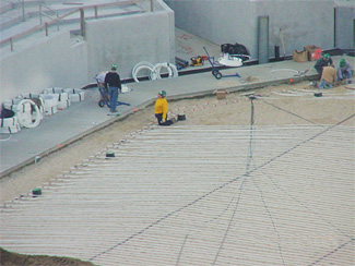 Another system that we installed is called Grassmaster. The system is a matrix of plastic fibers that are sewn into the field to stabilize the root zone when the grass wears thin and roots are no longer able to support proper footing. The Denver Broncos were the first NFL team to utilize the system, and their field is still playing as strong as ever. The fiber foundation helps provide the footing that is needed late in the season to prevent divots and blow-outs.