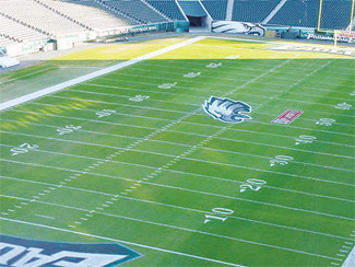 Note stadium shadow in background–shade is a factor taken into consideration when choosing a proper turfgrass blend. (For the record, the Eagles lost the game (14 to 3.)
