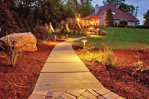 To light the areas, the contractor used four fixture types of Unique Lighting product. On the 24-volt system, the contactor ran a series of 10-watt and 35-watt fixtures. The lighting scheme includes up-lighting trees, pergola accent lights onto the stone counter top, step-lights set into the stone steps and path-lights down to the pigeon house.