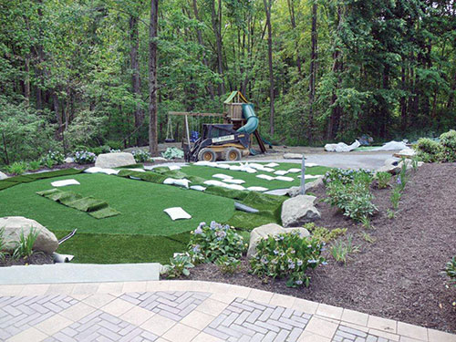More than 15 natural rock boulders were strategically placed around the putting green and around the fireplace area, according to the contractor, ''To create a natural mountain-side affect, while retaining the slope.''