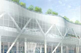 The Transbay Transit Center will be a multilevel glass structure spanning five blocks. It will be will be both a transit and retail center. The completion date for Transbay is expected to be 2014. The transit center would serve a projected 45 million passengers a year. Pelli Clarke Pelli Architects propose transforming the roof of the Transit Center into a 5.4-acre city park. Photos Courtesy of Pelli Clarke Pelli Architects