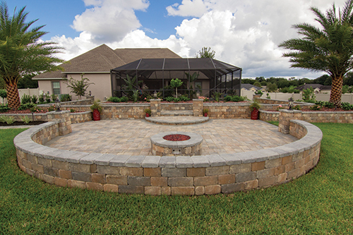 When Bill Anderson, who had started in landscaping as a teenager, and his cousin Jason Lyons moved from Ft. Lauderdale, Fla., to the central Florida town of Ocala where they already had a tree farm and wanted to start a landscaping business, they found that something important was missing – the convenience that they had grown used to of easily finding materials for jobs they landed. "In South Florida, within a 2-square-mile radius I could buy all the materials I needed," says Anderson. "When I got up here, it would take a day to round them up." His solution was to partner with his cousin and launch a store that was an all-around supplier for landscapers. That store, The Yard Stop, has been in business for five years and not only provides products to, and installation services for, the local residents and contractors, but also provides a basis for Anderson's and Lyons' busy landscape construction company called Yard Stop's Ultimate Outdoors. "We do a lot of high-end residential landscaping," Anderson admits. "We fell into that niche and that's where we stay." From Gainesville to Orlando, his company has installed hardscapes, landscapes, lighting, drainage, irrigation, covered structures, and water features. Almost all of that came into play at a residence in Ocala that was the go-to spot for family and friends of the homeowner who wanted an outdoor living space to better entertain them. Flexibility Required Ultimate Outdoors ultimately provided that, but Anderson recalls a tentative beginning, as the day the work was to start, a change of overall design was warranted. "Originally the project was really more contained in one area with an upper level planned," says Anderson. "I was standing up at about where the top deck was going to be and I noticed that you could see the neighbor's backyard very easily."