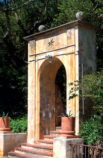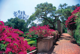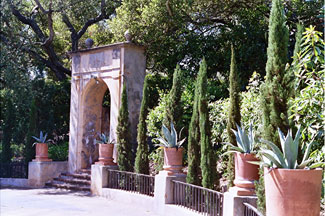 Val Verde?EUR??,,????'???s landscaped grounds have views of the mountains on one side and the Pacific on the other. The garden layout and Mexican villa were designed in 1915 by American architect, Bertram Goodhue (1869-1924). But in 1927, the property passed to Wright Ludington, a collector of antiquities who turned the villa into a Greek-Roman ruin-inspired creation called Val Verde. Ludington?EUR??,,????'???s designer was American landscape architect Lockwood de Forest Jr. (1896-1949). De Forest Jr. was one of Southern California?EUR??,,????'???s premier landscape architects in the 1920s, ?EUR??,,????'???30s and ?EUR??,,????'???40s. He spent from 1929 to his death in 1949 on the care and upgrading of the Val Verde flora. He was particularly fond of terracing of plants. De Forest Jr. also had a brief career as a landscape artist and painter. His landscape architecture archives are today housed at the University of California at Berkeley.