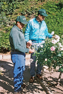 The gardeners ?EUR??,,????'??know what needs to be done?EUR??,,????'?? and do not have a written work schedule. Luis likes keeping the English ivy tidy and planting palms in shady recesses. The roses are pruned in January. Gerardo does the soil and fertilizer mixing. Enrique has a special fondness for pruning the oaks and hedges.