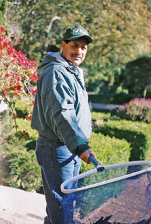 Mr. Braithwaite explains the hours of maintenance of the property, irrigation and specialized turf care procedures are the province of the gardeners. In the old days, the estate grounds required about 14 people, plus supplemental seasonal labor. Today, the Val Verde estate landscape is tended to by head gardener Luis Almanza and his nephews, Gerardo and Enrique, all from La Luz, a village in northeast Mexico. The Almanza connection goes back to Luis?EUR??,,????'??? father, Augustin, who started at Val Verde by pulling weeds for .25 cents an hour and stayed for 30 years, becoming the head gardener for the estate and at St. Francis Hospital in Santa Barbara. Augustin?EUR??,,????'???s son, Luis, continued the tradition and has led the gardening crew for over 40 years. Luis?EUR??,,????'??? son, Jose, worked the grounds for over 10 years and brought his cousins, Gerardo and Enrique, to the estate in the 1970s.