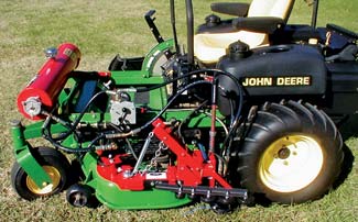 Model No.: H Model HP: 3 Weight: 47 lbs. Type of blades: String Length of machine: Deck mounted Displacement: Hydraulic powered Handle: Foot pedal control Accessories: Variable speed flow control valve Special Features: Tap top string feed, tilt head no preset stops; lateral movement in and out, floating action, one person does two jobs. Warranty: 1 year Cost: $1,995