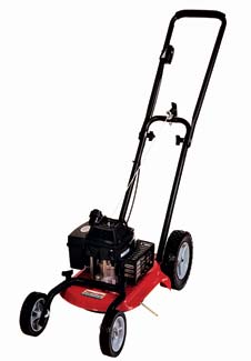 Model No.: WT1001 HP: 2.5 Weight: 28 lbs. Type of blades: String or disc. Length of machine: 20” Handle: 48” Metal Accessories: None Special Features: Open sided for level trimming againsts buildings, fences, signs; removable front wheels for use as a brushcutter Warranty: 12 months Cost: $425