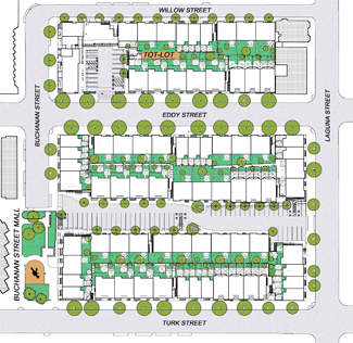 Yerba Buena Plaza East (YBPE) is a HOPE VI residential development in San Francisco. Completed in 2000, 193 townhouses replaced high-rise towers that were degraded from years of abuse and neglect. Balancing the goals of the new development was tough?EUR??,,????'??+the building architects wanted to maximize housing units, while residents screamed for open space. Miller Company Landscape Architects performed the YBPE landscape design.