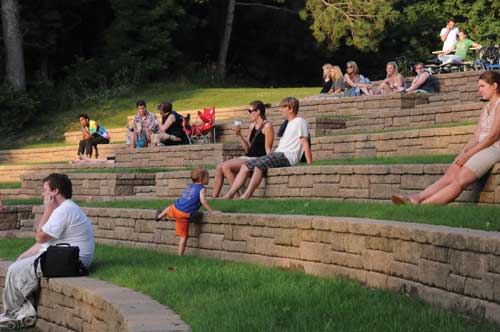 The amphitheatre did get built, with hundreds of students, faculty and friends wading through mud to level the site, lay sod and lug slabs of limestone. At the "Melvin Wall Amphitheatre" dedication in 1972, the Minnesota Orchestra performed, and Dr. Wall's widow, Margaret, donated a memorial fountain in his honor.