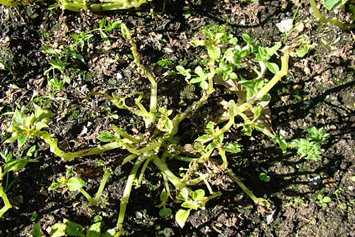 The mildew disease is quite aggressive and the dieback happens fast. The first sign of the disease is white spores on the underside of leaves.