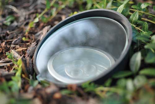 The three-tiered fountain (right) has two LED Kichler underwater lights, and is uplit by one bullet light. A Ravenna LED directional spotlight accents the top of the fountain from above.