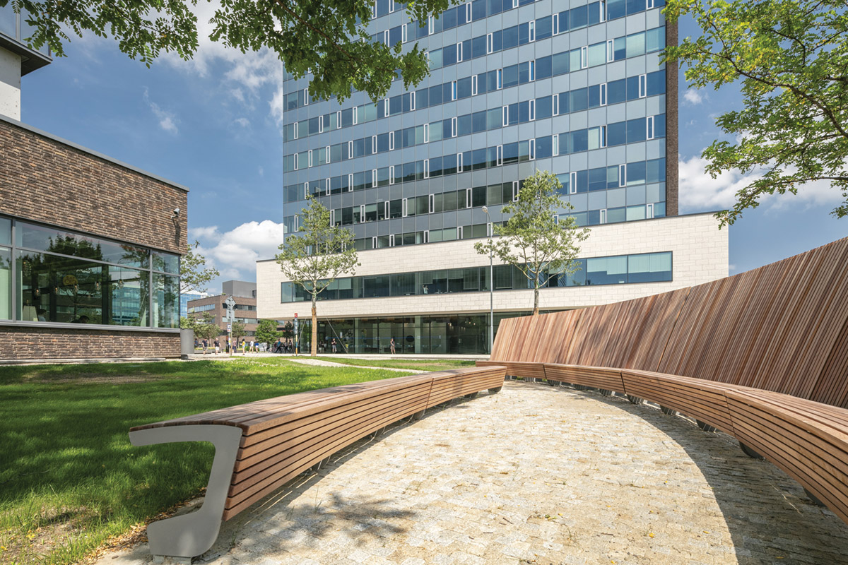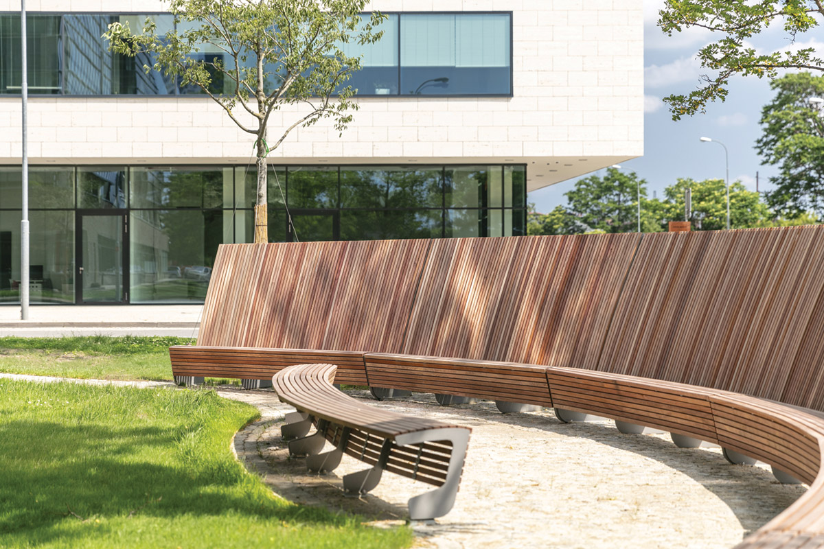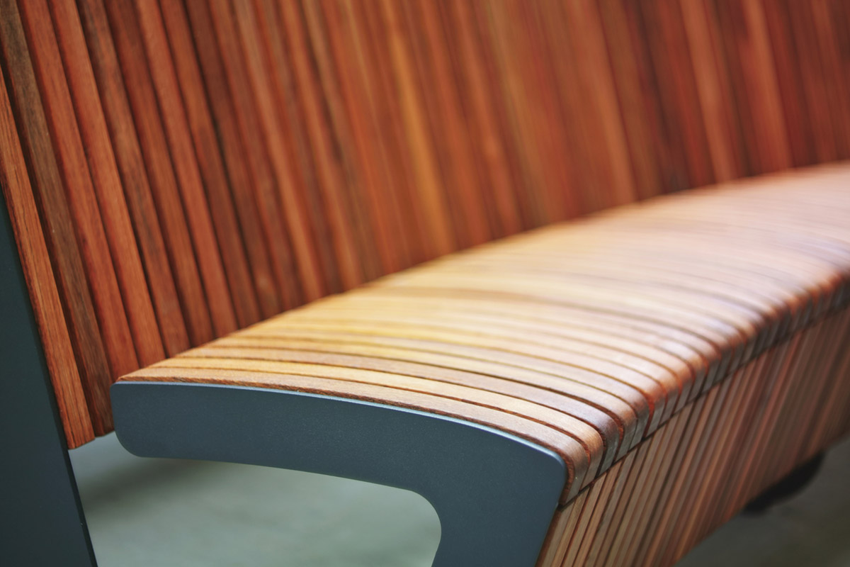 Public realms are fascinating places where people meet each other and also experience the history of the city. We are really pleased that our design is directed towards something as interesting as urban areas. We can offer fine quality to all citizens and influence their taste. For mmcité, making street furniture is a cultural mission. We can completely change the face of the city by installing just a few small elements. mmcité is not only a supplier of high-quality street furniture, our company is also a partner to all those who want to create something special within public spaces. Mayors of cities of all sizes, in the mountains or coastal areas, architects of small teams and large design institutions, construction companies of local or transnational importance - we address all of them with the aim of achieving the perfect project. Landscape Compact A system of seating elements expanding our Landscape range, featuring a bold side profile and the classic gap between seat and backrest for a minimalist form. Each individual Landscape compact module can be combined to form unique long seats with a mix of straight and curved sections, or you could even use them as individual benches and seats in their standard sizes. Landscape Compact is made of galvanized powder-coated steel structure. Seat and backrest consist of lateral hardwood lamellas in jatoba or black locust. The individual benches or custom designed infinite stretches easily mount directly to the surface.