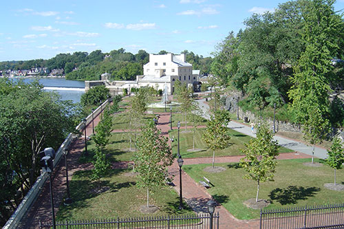 In 1963, early in his career, Mr. Collins designed the greenways in Society Hill, a pedestrian walk from St. Peter's Episcopal Church to Independence National Historical Park. He used only plants and materials found naturally in the Philadelphia area. He believed native plants were the backbone of the planted landscape and should not be neglected in favor of the exotic and unusual. He first drew plans for Schuylkill River Park in 1965. He had inmates on work-release cut grass, fertilize, weed, and prune trees along the river.